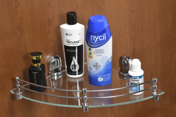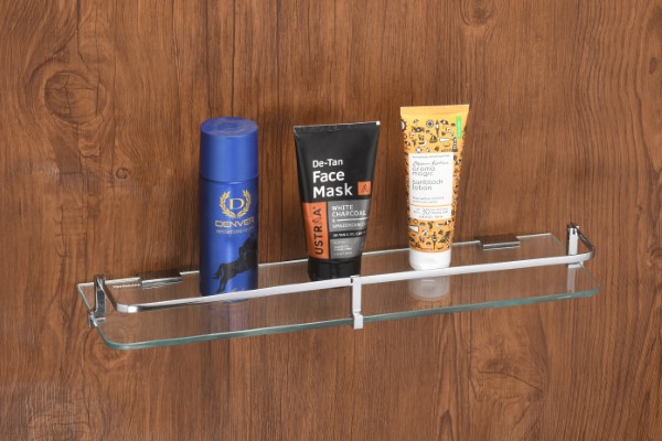 This type of shelf is generally made from 8 mm thick tempered or toughened glass, which is widely used in glass shelving due to its strength and structural stability. Tempered glass undergoes a heating and rapid cooling process that increases its durability and helps it break into small granular pieces rather than sharp shards if damaged.